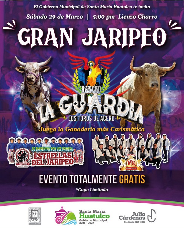 Este sábado 29 de marzo, disfruta una tarde llena de adrenalina en el Lienzo Charro de Santa María Huatulco. Oaxaca vs. Morelos se enfrentan por primera vez con Los Toros de Acero del Rancho La Guardia y la participación de las Estrellas del Jaripeo.