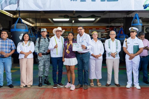 En ese mismo compromiso, el Gobierno Municipal de Santa María Huatulco, que preside el Ing. Julio Cárdenas, participó activamente en esta jornada desde el Gimnasio Azteca, donde alumnas y alumnos del COBAO Plantel 22 aprendieron fundamentos del boxeo y recibieron el mensaje de que el deporte puede abrirles camino hacia un mejor futuro.