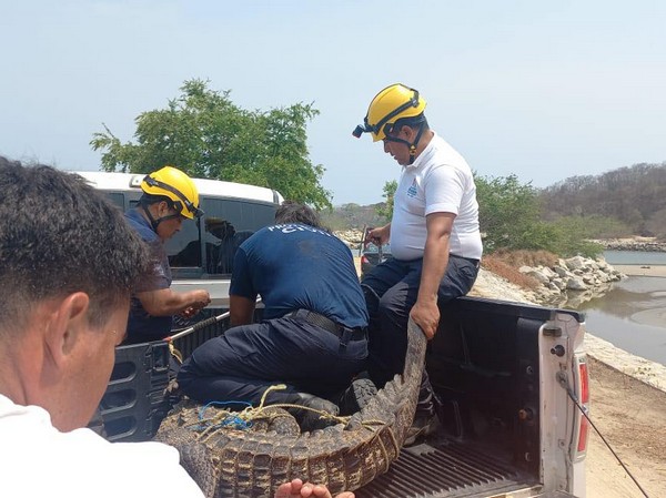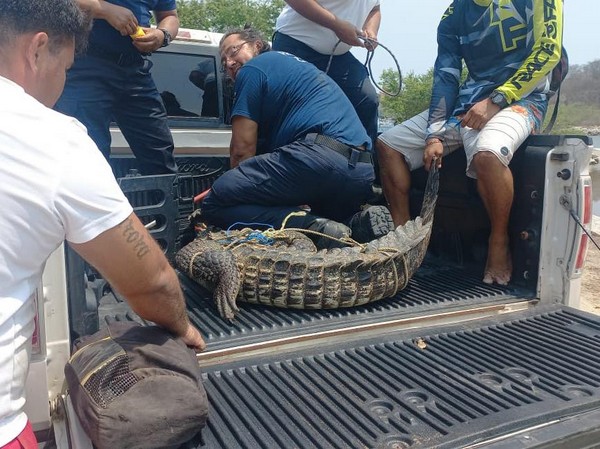 El Gobierno de Santa María Huatulco que preside el Ing. Julio Cárdenas, en coordinación entre prestadores de servicio de acuamotos, guardavidas y la Guardia Nacional, se logró la captura segura de un cocodrilo en la Bahía de Tangolunda.