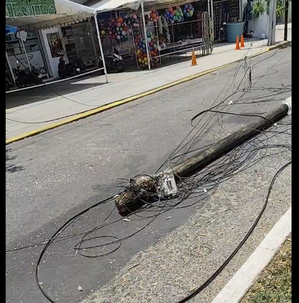 Policías Viales del Estado cerraron la avenida, hasta en tanto se recogen los postes y cables que están sobre banquetas y pavimento.