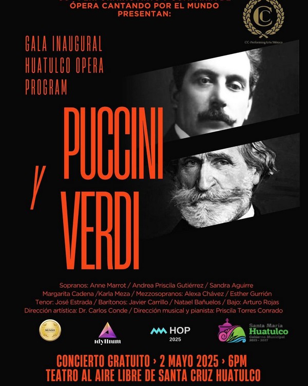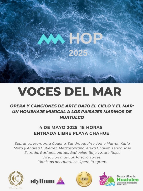 El Gobierno Municipal de Santa María Huatulco, que encabeza el Ing. Julio Cárdenas, te invita a ser parte de una experiencia cultural única con el Huatulco Opera Program 2025, un evento de talla internacional que eleva el arte y la música en nuestro destino turístico.
