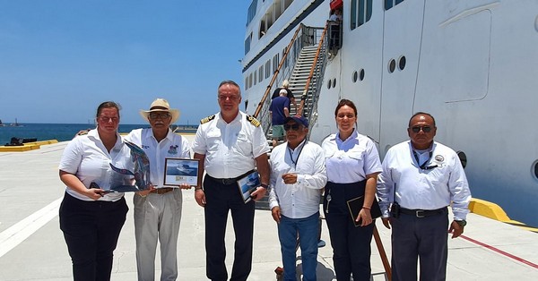 Como parte de la visita del crucero que arribó este martes a nuestro puerto, se realizó el tradicional intercambio de placas entre autoridades locales y el Capitán de la embarcación.