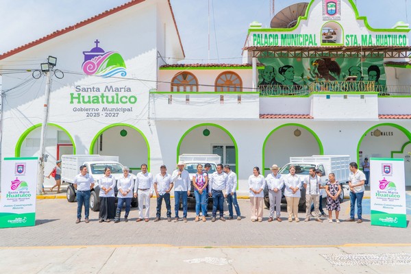 Con el objetivo de fortalecer las labores de atención ciudadana en las comunidades, el Gobierno Municipal de Santa María Huatulco, que preside el Ing. Julio Cárdenas, realizó la entrega de nuevas camionetas a las agencias municipales de Arroyo Xúchitl, Bajos del Arenal y Bajos de Coyula.