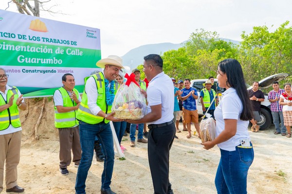 Nos reunimos con las y los habitantes de barrio Guarumbo para informarles sobre el inicio de la pavimentación de la calle principal de esta importante comunidad de nuestra cabecera municipal de Santa María Huatulco.