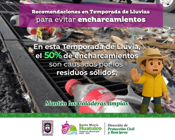 El Gobierno Municipal de Santa María Huatulco invita a la ciudadanía a seguir las recomendaciones de Protección Civil para evitar inundaciones y encharcamientos: