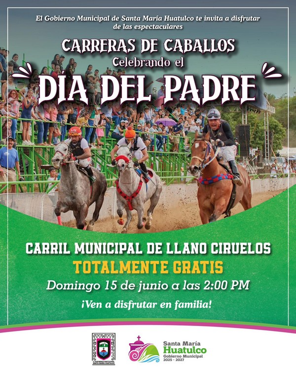 El Gobierno Municipal de Santa María Huatulco te invita a celebrar el Día del Padre con unas espectaculares carreras de cabellos.