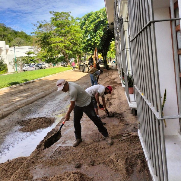 En seguimiento a las acciones emprendidas para atender las consecuencias del Huracán Erick, el Gobierno Municipal de Santa María Huatulco, que preside el Ing. Julio Cárdenas, llevó a cabo labores de limpieza y desazolve en las calles del Sector E, en la zona de Santa Cruz.