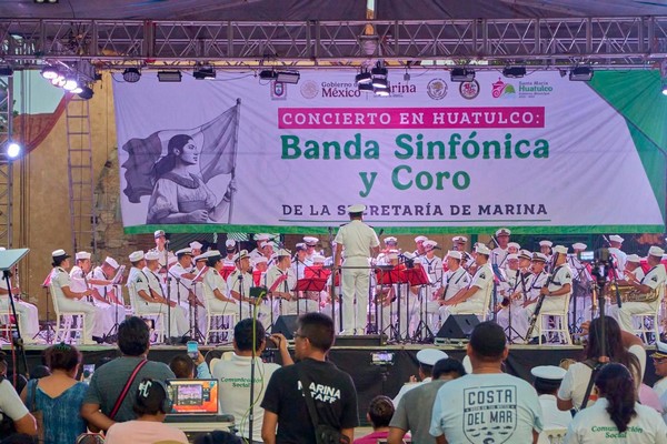 En un momento sin precedentes, la Banda Sinfónica y Coro de la Secretaría de Marina se presentó por primera vez en el municipio de Santa María Huatulco.