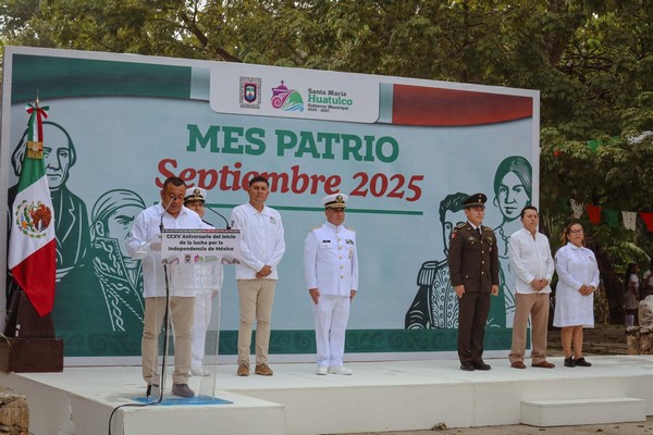 En un acto lleno de respeto y unidad, el Gobierno Municipal de Santa María Huatulco, que preside el Ing. Julio Cárdenas, llevó a cabo la ceremonia de izada de la bandera en la agencia de Santa Cruz Huatulco, con motivo del inicio de la independencia de México.