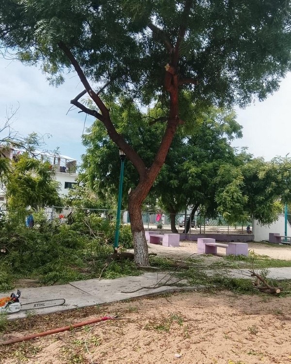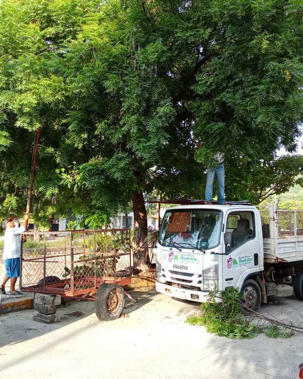 Con el objetivo de mantener espacios públicos dignos y seguros para las familias, el Gobierno Municipal de Santa María Huatulco, que preside el Ing. Julio Cárdenas, realizó trabajos de limpieza y poda de árboles en el parque del Sector U2 y sus alrededores.