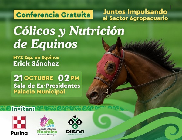 Te invitamos a que participes en la conferencia “Cólicos y Nutrición de Equinos”, dirigida a productores, médicos veterinarios y todas las personas que aman y cuidan el campo.