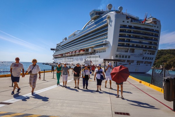 Con un arribo de 2,899 pasajeros y 1,133 tripulantes, que representa una derrama económica estimada de $3,468,462 pesos, este jueves Huatulco dio la bienvenida al hermoso Emerald Princess.