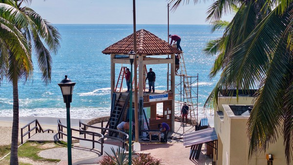 El Gobierno Municipal de Santa María Huatulco, que preside el Ing. Julio Cárdenas, a través la Regiduría de Obras Públicas, continúa realizando trabajos de rehabilitación en la torre de salvavidas de la playa Chahué, con el propósito de mantener en óptimas condiciones las instalaciones que garantizan la seguridad de residentes y visitantes.