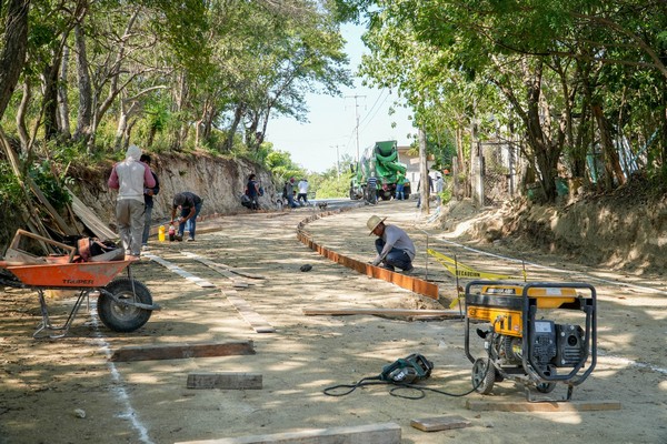 El Gobierno Municipal de Santa María Huatulco, que preside el Ing. Julio Cárdenas, a través de la Dirección de Obras Públicas, avanza en la pavimentación de la Calle Fraylio, en el tramo que conecta Barrio de La Cruz con Techal Blanco.
