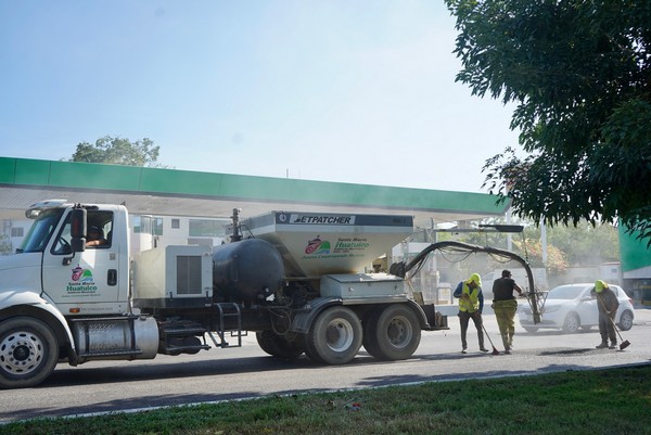Con el objetivo de mejorar la imagen urbana y ofrecer vialidades seguras y transitables en nuestro destino turístico, el Gobierno Municipal de Santa María Huatulco, que preside el Ing. Julio Cárdenas, a través de la Regiduría de Obras Públicas, continúa con los trabajos de bacheo a alta presión con tecnología Jetpatcher, proveniente de Nueva Zelanda, una técnica moderna que permite reparar los baches en minutos y reabrir la vialidad apenas 15 minutos después.