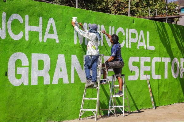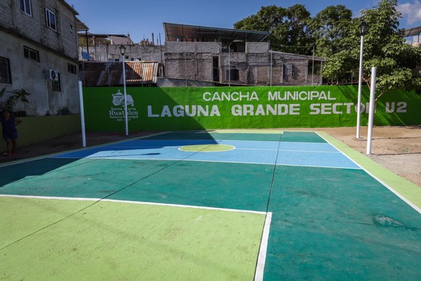 El Gobierno Municipal de Santa María Huatulco, que preside el Ing. Julio Cárdenas, a través de la Regiduría de Fomento Económico y los brigadistas de pintura y rótulos de la Dirección de Servicios Municipales, realizó la rehabilitación de pintura de la cancha de fútbol en el sector u2 de nuestro municipio.