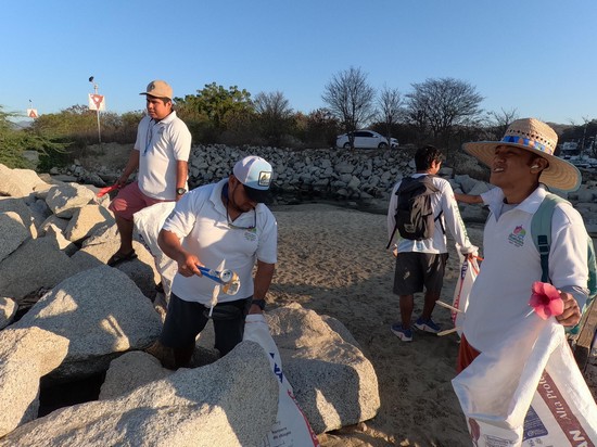 El Gobierno Municipal de Santa María Huatulco, que preside el Ing. Julio Cárdenas, a través de la Dirección de ZOFEMAT, llevó a cabo una jornada de limpieza en Playa Chahué, con el objetivo de retirar residuos sólidos acumulados en la franja de playa, el canal pluvial y zonas adyacentes, durante esta actividad se recolectaron 35.8 kilogramos de residuos.