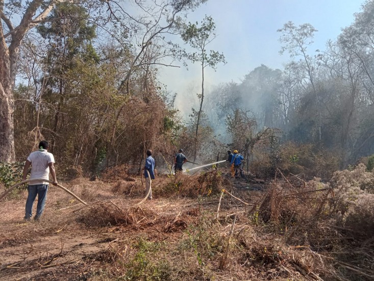 Las brigadas trabajan en el lugar para salvaguardar la seguridad de la población y evitar la propagación del incendio