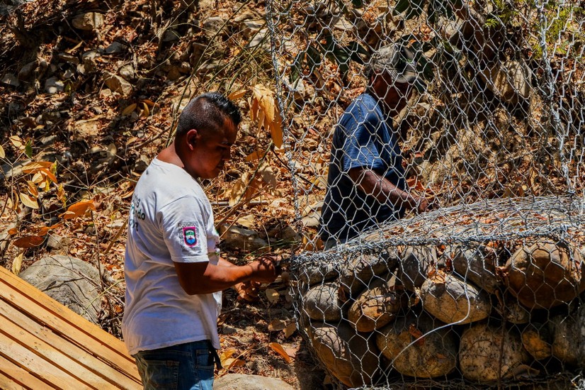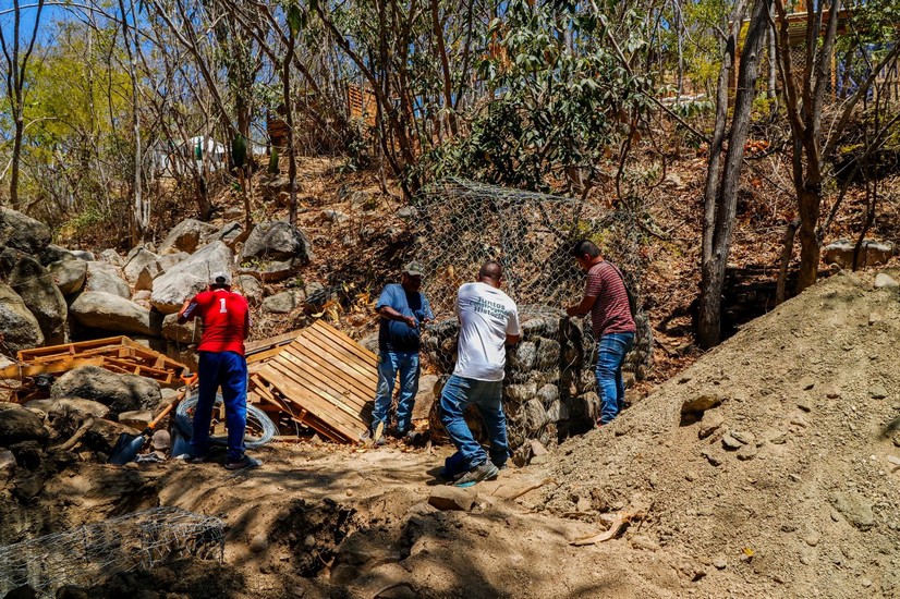 Con el objetivo de reducir riesgos durante la próxima temporada de lluvias, se continúan realizando trabajos en el sector Ampliación J, donde se lleva a cabo la reconstrucción de muros de gaviones, con el fin de prevenir deslizamientos de tierra que pudieran afectar a las y los vecinos. De igual manera, se realizan labores de limpieza en el arroyo, fortaleciendo las medidas de prevención en la zona.