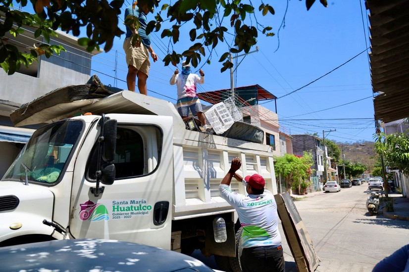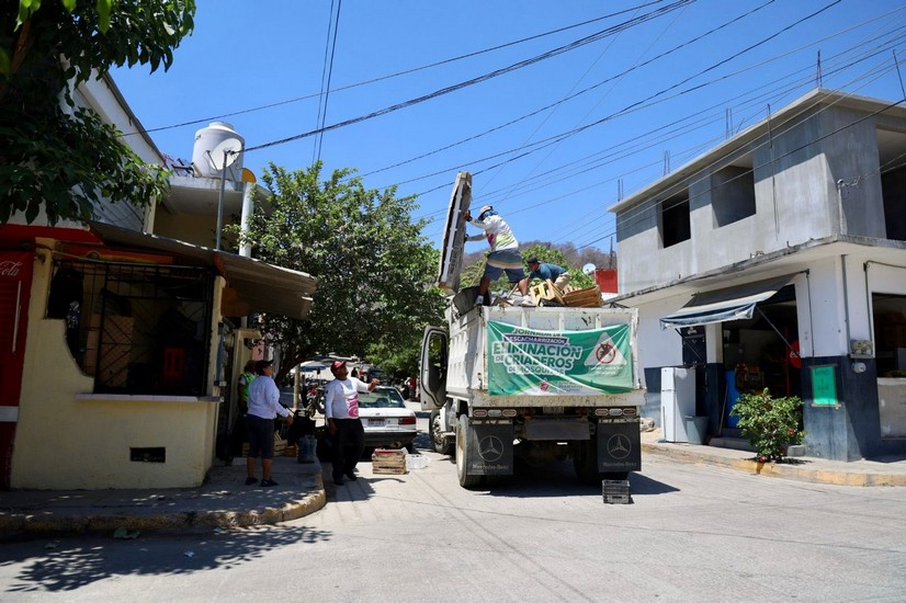 Continúan las acciones de descacharrización en la agencia de Santa Cruz Huatulco, trabajando en los sectores U2, U2B y U2 Sur, como parte de las estrategias para la eliminación de criaderos de mosquitos transmisores de enfermedades.