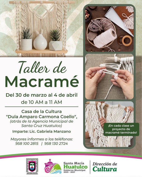 📍 Lugar: Casa de la Cultura “Dula Amparo Carmona Coello” (atrás de la Agencia Municipal de Santa Cruz Huatulco)