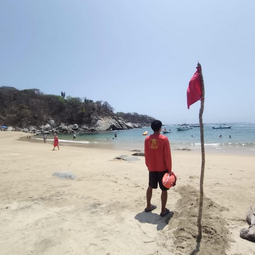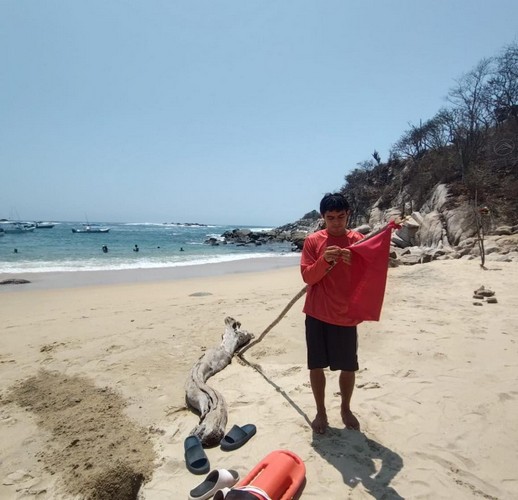 El Gobierno Municipal de Santa María Huatulco, que preside el Ing. Julio Cárdenas, a través de la Dirección de Protección Civil y Bomberos, instaló bandera roja en Playa El Arrocito debido a la presencia de Mar de Fondo, fenómeno que genera oleaje elevado y condiciones de riesgo para los bañistas.