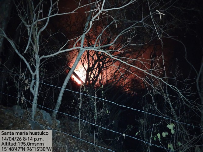 El Gobierno Municipal de Santa María Huatulco, que preside el Ing. Julio Cárdenas, a través de Protección Civil y Bomberos, atiende un incendio registrado en la comunidad de Todos Santos, el cual se ha extendido hacia la zona de Las Pozas, manteniéndose activo.