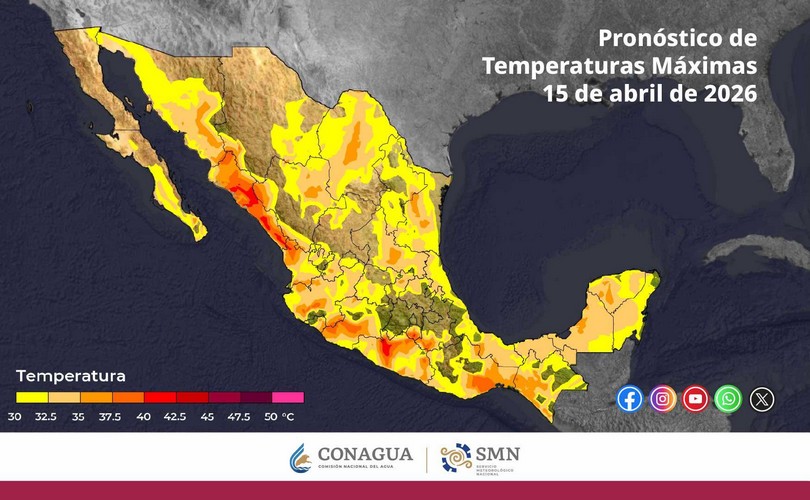 El Pronóstico de #Temperaturas máximas para este miércoles 15 de abril, donde se prevén condiciones de calor en gran parte del país, con temperaturas elevadas en diversas regiones.