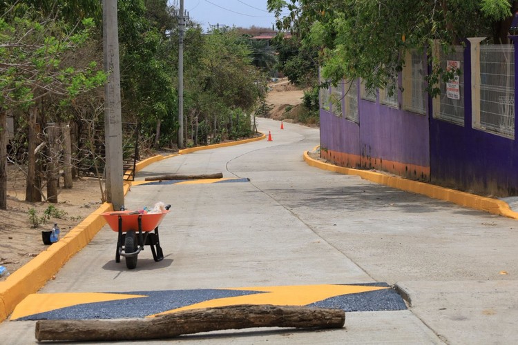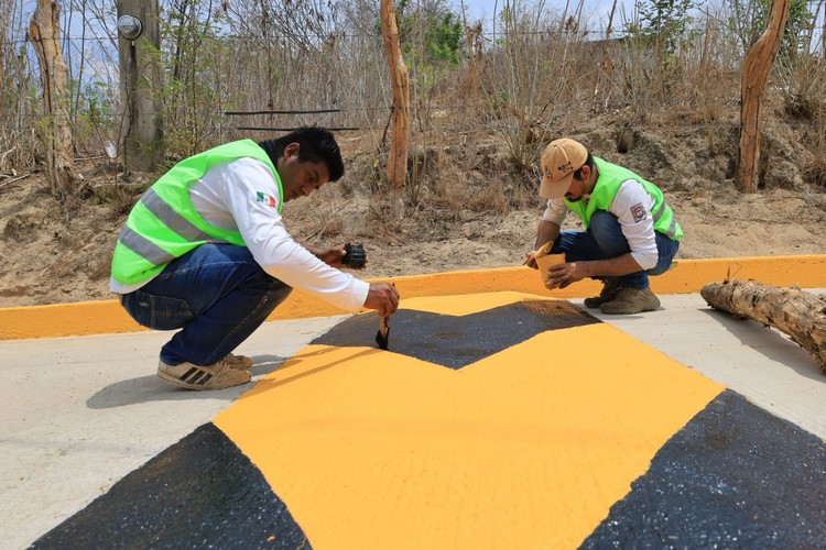 El Gobierno Municipal de Santa María Huatulco, que preside el Ing. Julio Cárdenas, a través del Área de Vialidad en colaboración con la Dirección de Servicios Públicos Municipales, realizó trabajos de pintura en guarniciones y topes en la calle número nueve de la colonia Vicente Guerrero.