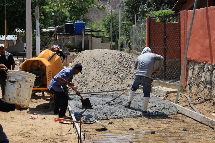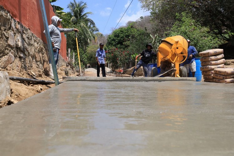 Con el objetivo de mejorar la infraestructura vial y brindar mayor seguridad a las y los habitantes, el Gobierno Municipal de Santa María Huatulco, que preside el Ing. Julio Cárdenas, a través de la Dirección de Obras Públicas, en coordinación con la representación municipal de la comunidad de Puente de Coyula, realiza trabajos de pavimentación en la calle del Barrio Centro.
